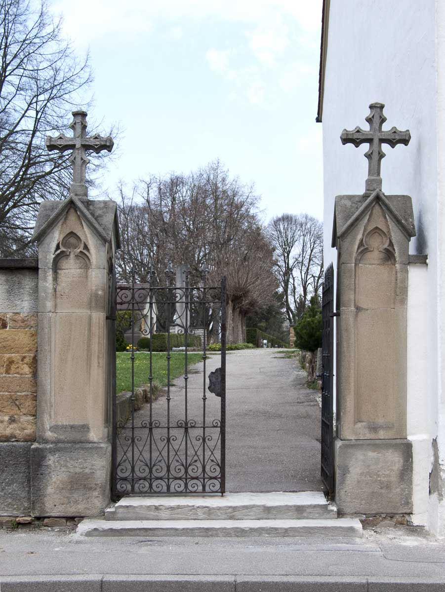 Durch die Verlegung des Friedhofs 1575 vom Pfarrhof an den damaligen Ortsrand wurde sie zur Friedhofskapelle und ragt heute aus der Natursteinmauer der südlichen Friedhofsumgrenzung.