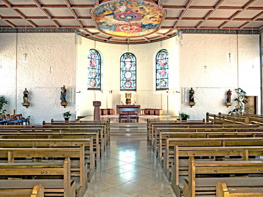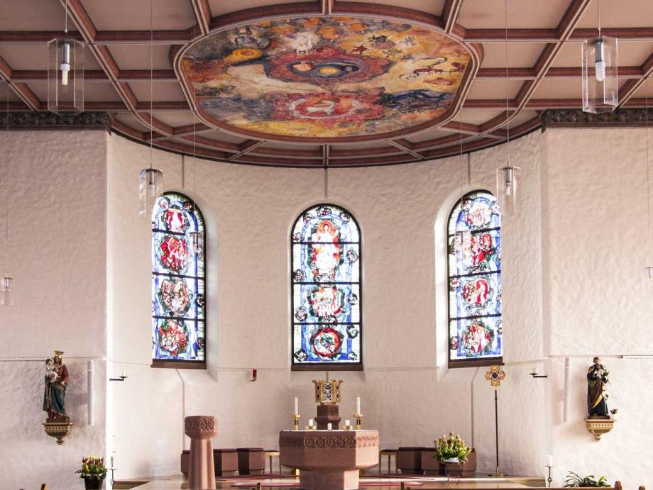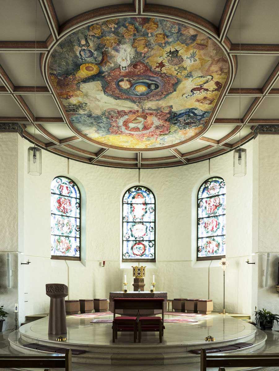 Blick zum Chor (Neubau) · Deckengemälde "Apokalypse"