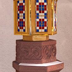 - Ausstattung Chor · Taufstein · Kerzenständer