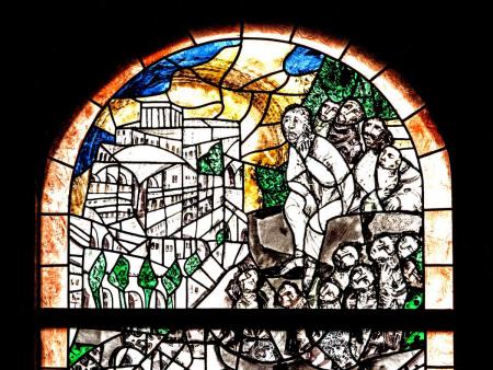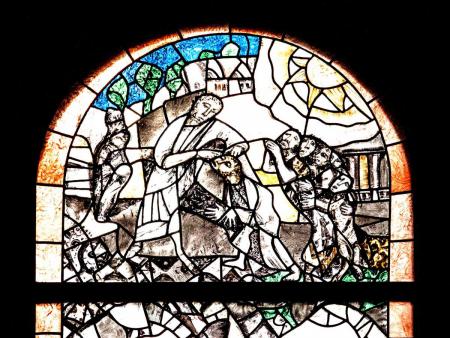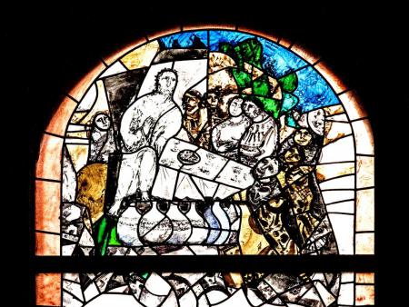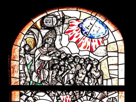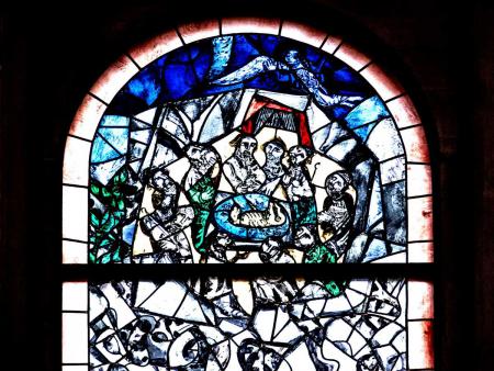 Das Paschafest der Juden im 3. linken Fenster weist hin auf die Erinnerungsfeier an den Auszug aus Ägypten (Ex 12, 1-11).