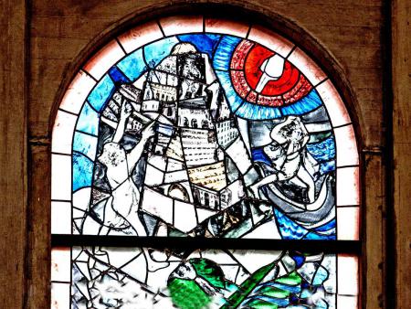 Dem 2. alttestamentarischen Bild liegt der in Gen 11, 1-9 geschilderte Turmbau von Babel zu Grunde. Durch Egoismus geprägte Menschen verstehen einander nicht und reden aneinander vorbei.
