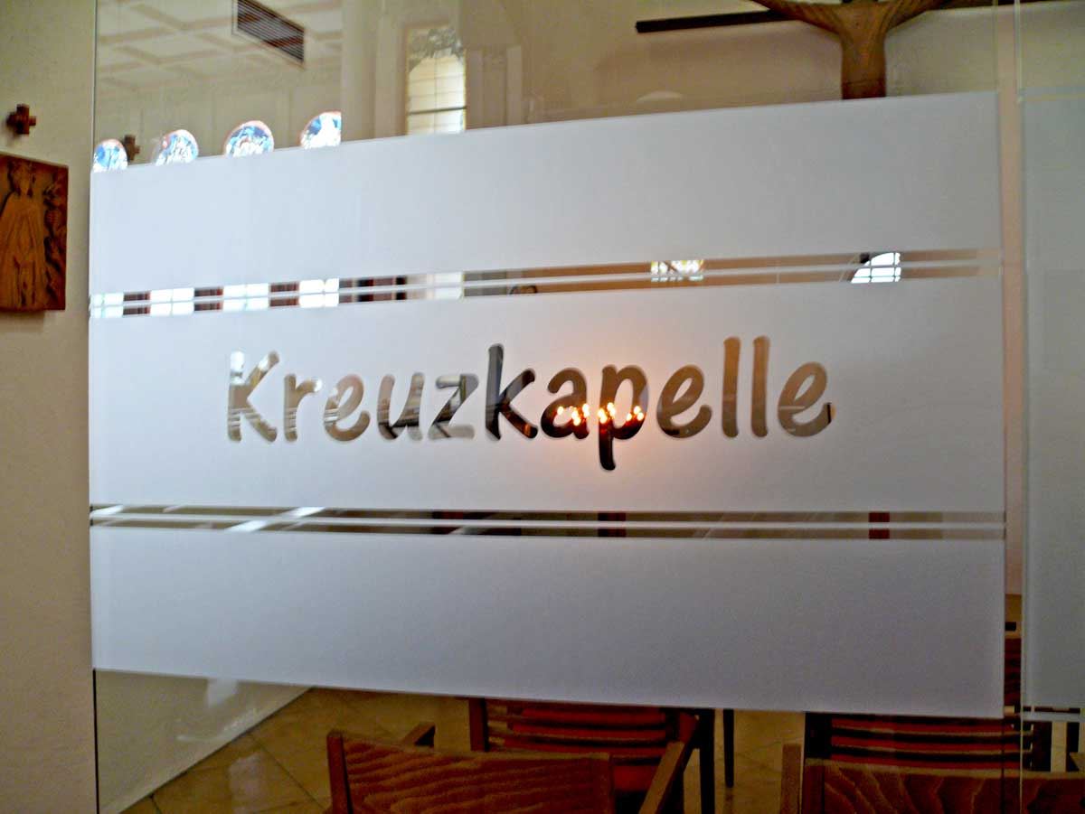 Jesus lehrt uns beten: „Erlöse uns von dem Bösen". Im Fensterbild wird er gezeigt, wie er Blinde heilt (Mk 8, 22-26).Er schenkt Erlösung vom Bösen. Die Krankensalbung soll Leben und Heil schenken für die Seele und den Leib.