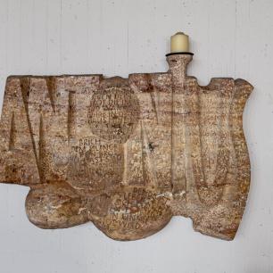 Ein Wunsch der Gemeinde war auch einen Hl. Antonius in der Kirche zu haben. Er steht für die Nächstenliebe und den Einsatz für die Armen. Als Relief in rötlichem türkischem Travertin steht der Name ANTONIUS, mit stilisierten Brotlaiben und Teile des Liedes „Brich den Hungrigen dein Brot“. Geschaffen wurde das Relief 1998 von dem Plieninger Bildhauer Markus Wolf.