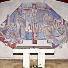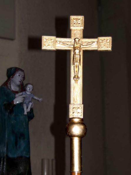 Chor mit Altar & Crucifix · Links Maria mit Jesus, Vortragekreuz