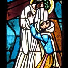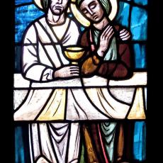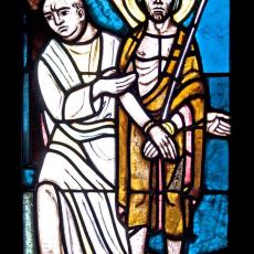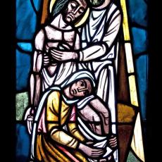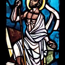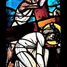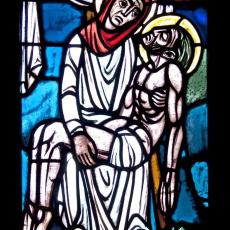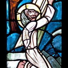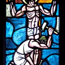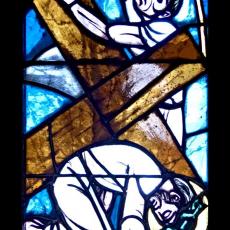Abweichend von der "Norm" finden wir 18 Fenster, also 4 mehr, als ansonsten: zwei zu Beginn: Abendmahl & Gethsemane, zwei nach der Grablegung: Auferstehung & Der Auferstandene in der Mandorla.