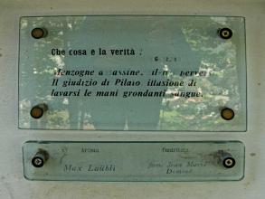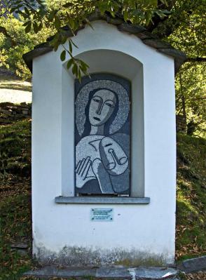 Via Crucis, Kreuzweg 1779 eingeweiht. Die 14 Kapellen wurden 1998 restauriert und die verblassten Fresken durch Mosaike zeitgenössischer Künstler (Giuseppe Bolzani, Max Läubli, Giancarlo Tamagni und Mauro Valsangiacomo) ersetzt.