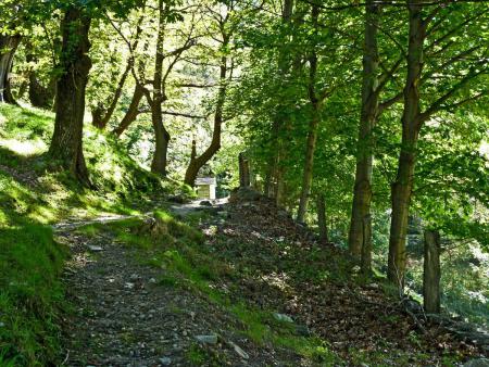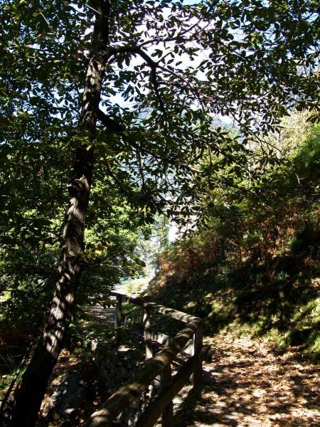 Der Weg auf der rechten Seite der Kirche führt am alten Friedhof vorbei und biegt dann in den 1799 eingeweihten Kreuzweg ein. Die 14 Kapellen, im Schatten der Kastanienbäume, sind mit Mosaiken von zeitgenössischen Künstlern versehen; die verblassten Fresken wurden 1998 damit ersetzt. In etwa zwanzig Minuten erreicht man die Steinbrücke über den Froda-Bach, den schönen Wasserfall und das Kirchlein der Santa Petronilla.