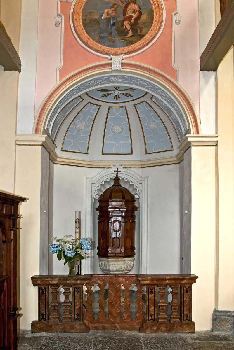 Den Altar der Kapelle schmückt ein 1732 datiertes Scagliola-Frontale aus Stuckmarmor von Francesco Solari. Das Äussere der Kirche wurde 2004 restauriert.