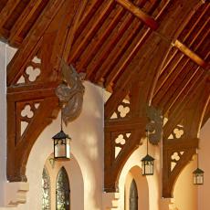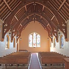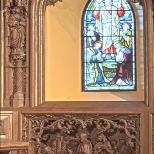 33 bzw. 38 Fenster (wenn man im Vorraum alle einzeln zählt) schmücken diese Kirche, die Michael und allen Engeln geweiht ist - auf den Fenstern in verschiedenen Situationen dargestellt. Geschuldet der Entstehungsgeschichte sind die Legenden zu den Fenstern in englischer Sprache verfasst.