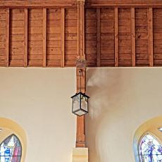I - IV: Querrippen Gebälk im Schiff (I ohne, II - IV mit je 2 Engeln (aus Holz))
