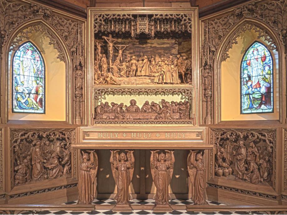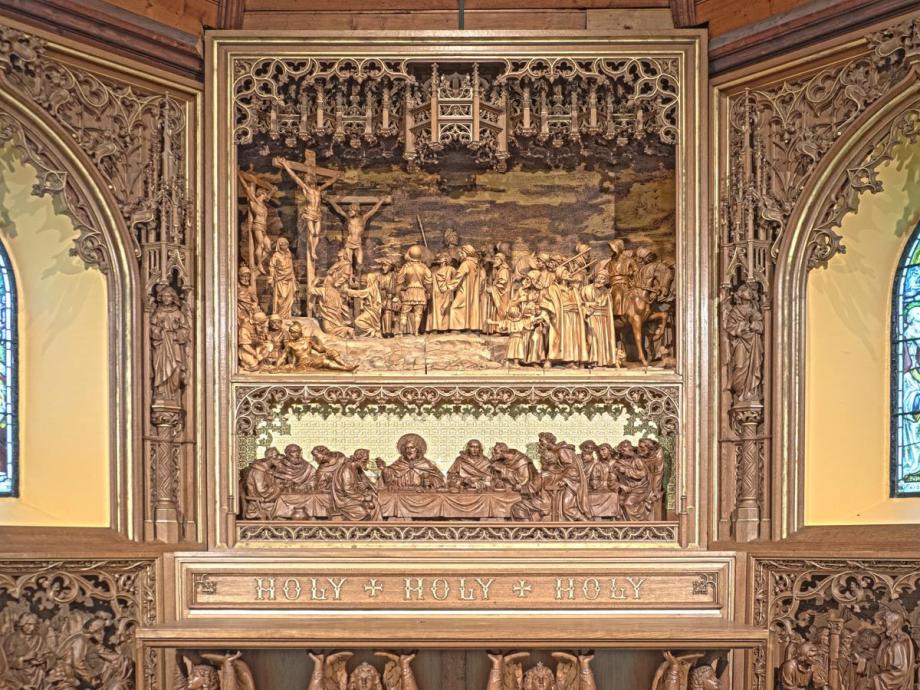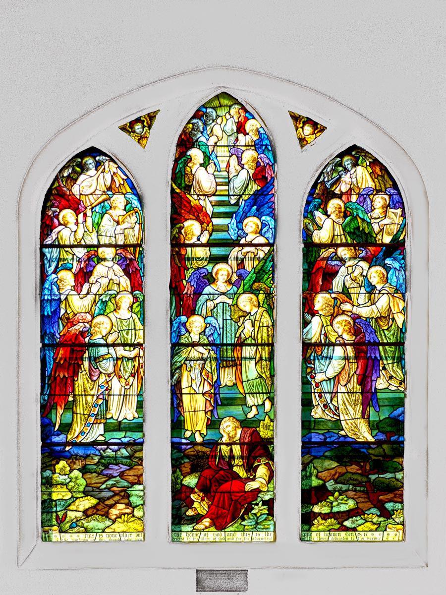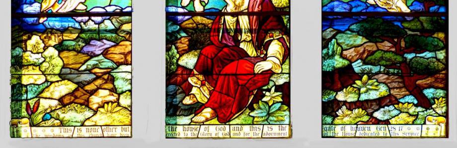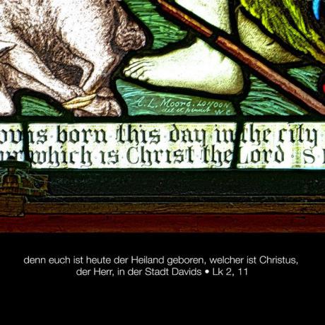 Die Fenster in dieser Kirche wurden zur Ehre Gottes errichtet und zum Schmuck des Hauses, geweiht seinem Gottesdienst