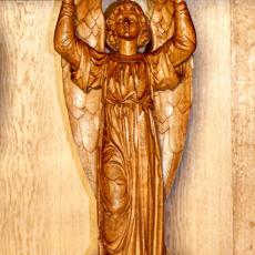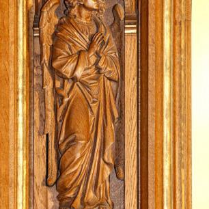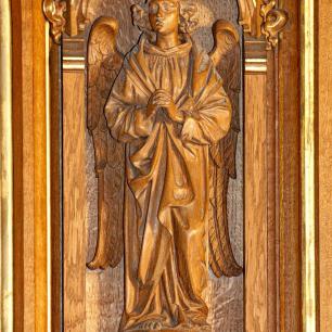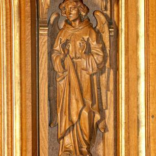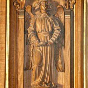 Namentlich dargestellt sind nur die vier Erzengel Gabriel (f11), Michael (f12), Raphael (f10) und Uriel (f9) - im Eingangsbereich an der Westseite; ansonsten Szenen aus dem AT und NT, in welchen Engel eine wichtige Rolle spielen.