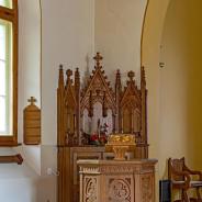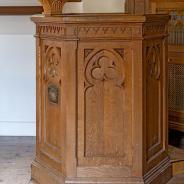 3.01 - 3.06: Kanzel aus Holz - Stiftung eines englischen Oberst im Jahr 1893. Widmungsplakette (3.04) an der Vorderseite: Zum liebevollen Gedenken an Elisabeth Baroness Ashtown, die hier zum letzten Mal dem Gottesdienst der Kirche auf Erden beigetreten ist und auf dem englischen Friedhof in Montreux ruht.