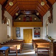 1946 wurde eine Empore eingebaut. Die beiden gedrehten Holzsäulen, die sie tragen, wurden von Dorfpfarrer Christian Ritschard geschnitzt. Auf der Empore befindet sich eine alte Orgel (1958 erworben), welche das Harmonium, das den musikalischen Erwartungen der Gläubigen nicht mehr entsprach, vorteilhaft ersetzt.