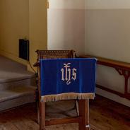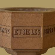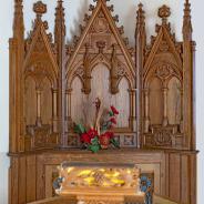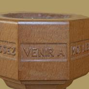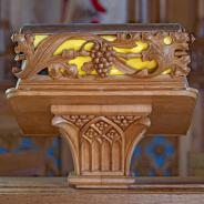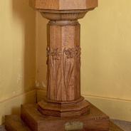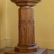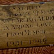 .3.21 - 3.24: Taufstein (aus Holz) Widmungsplakette (3.21a) unten Mitte: Gesegnet. In glücklicher Erinnerung an mein Liebling Audrey in unendlicher Liebe von Mummie. 1991 1944