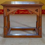3.07: Abendmahlstisch. Widmungsplakette (3.07a) am Querbalken unten Mitte: Zur Ehre Gottes im Gedenken an Edward KEITH-ROACH,