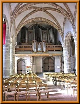 I. Grand orgue C-g³ 1. Bourdon (C-g° Holz) 16' 2. Montre (Façade) 8' 3. Bourdon 8' 4. Prestant 4' 5. Flûte conique 4' 6. Doublette 2' 7. Fourniture IV 11⁄3' 8. Cornet (ab c¹) III 9. Trompette 8' |