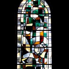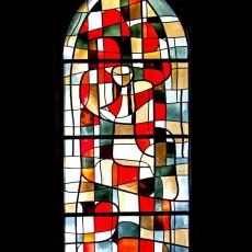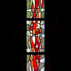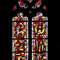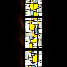 Die mittleren drei der insgesamt fünf Chorfenster halten bedeutungsvolle Ereignisse aus dem Leben Christi fest: da ist links das blaue Weihnachtsfenster mit der Lilibenblüte als Ausdruck der Reinheit, und mit dem Bethlehemstern. Das mittlere Fenster, vorwiegend in Rot gehalten, erzählt von Ostern und vom Wirken des Heiligen Geistes. Das Fenster rechts mit Dornenkrone und krähendem Hahn soll an Leiden und Sterben des Herrn erinnern. Das Abendmahlsfenster mit Brot und Kelch und das Fenster der Offenbarung beschließen diese eindrückliche Predigt aus Farben und Licht.