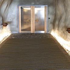 1973 Innenausbau des Kirchenraums im Felsen und des Kirchenvor-baus im Freien. Fertigstellung Felsenverkleidungsarbeiten Hauptzu-gang.