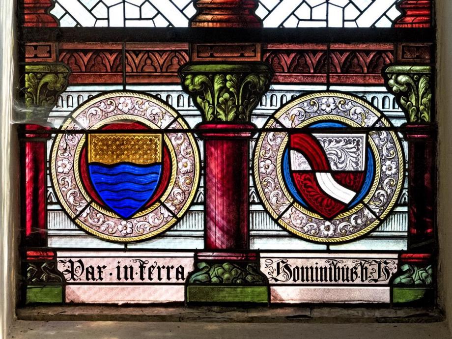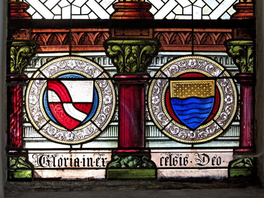 unten die Wappen des Stifters -