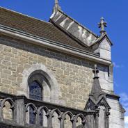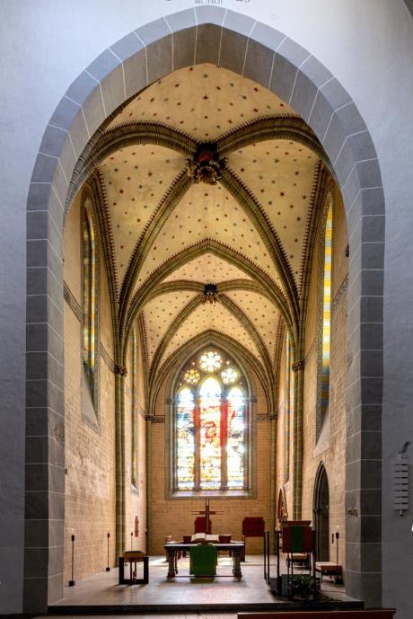 Der im eleganten gotischen Stil erbaute Chor bildet den ältesten Teil der heutigen Kirche. Er wurde Ende des 19. Jahrhunderts renoviert, wobei man die ursprünglich aus Sandsteinquadern gestaltete Fassade mit hartem Gestein originaltreu nachbildete. Zur selben Zeit entstanden neben dem Chor die neogotische Pfeilerhalle und die Sakristei.