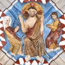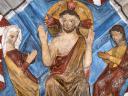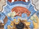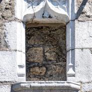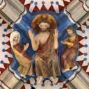 Im Innern bemerkt man die beiden mehrfarbigen Schlusssteine des Rippengewölbes. Der vordere stellt symbolisch die vier Evangelisten dar, vereint durch einen Kranz aus Akanthusblättern (4.,17 - 21), der hintere zeigt den die Kirche segnenden Christus, mit der Heiligen Jungfrau Maria zu seiner Rechten und wahrscheinlich dem heiligen Johannes der Täufer zu seiner Linken (4.13 - 16).