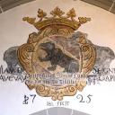Über dem Triumphbogen verweist das mit den Namen von Landvögten versehene Berner Wappen auf den alten Patronatsherrn des Chores; nach der Reformation hatte Bern die Nachfolge des Kapitels an der Kathedrale von Lausanne angetreten. Ein erstes Wappen trägt die Jahreszahl 1592; 1725 wurde es mit einem zweiten, imposanteren überdeckt.