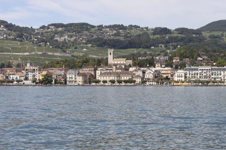 Blick vom Genfer See auf Vevey mit St. Martin