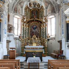 Den zweigeschossigen barocken Hochaltar schuf Antoni Sigrist aus Brig (gest. 1745). Auffallend sind die gedrehten Säulen, die von Weinlaub und roten Trauben umgeben sind.