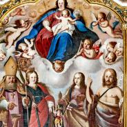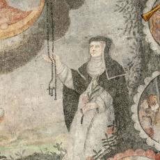 1661 schuf der bischöfliche Hofmaler aus Chur, Johann Rudolph Sturn (gest. um 1662), das grosse Bild der Rosenkranzkönigin an der Ostwand neben der Kanzel. Es ist eine Art Lebensbaum mit Maria und ihrem Kind in der Mitte. Sie verteilt dem heiligen Dominikus und der heiligen Katharina von Siena je einen Rosenkranz. Rundherum sind in Medaillons die 15 Geheimnisse des Rosenkranzes dargestellt.