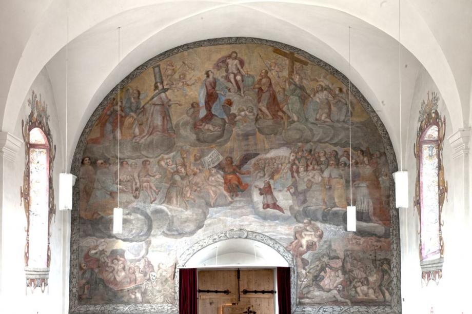 Ein besonderer Höhepunkt bildet das Jüngste Gericht (s.u.) an der Nordwand, denn es wurde erst 1968 wieder unter der Tünche entdeckt und restauriert. Dafür musste die ganze Orgelempore über der Eingangstür abgebrochen und das Instrument auf einer Loggia im Chor wieder aufgebaut werden.