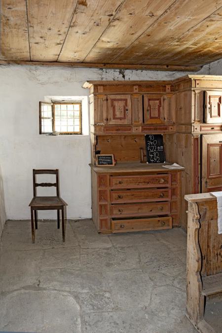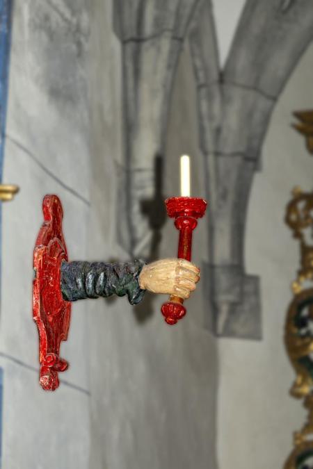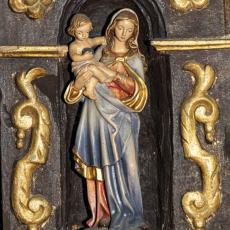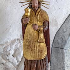 Heute wieder in Sogn Glieci in der Nische hoch über dem Schiff auf der linken Seite aufgestellt - hinter Panzerglas.