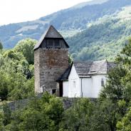 Die dem Märtyrer Laurentius gewidmete Kirche liegt -weitherum sichtbar- auf dem Burghügel zwischen Glenner und Valserrhein. Die Burg ist verschwunden. Einzig der Bergfried steht noch und dient seit 1515 als Kirchturm für das damals errichtete Gotteshaus.