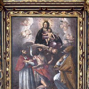 Altarblatt: Maria mit S. Carlo, Johannes Ev. und Ulrich; signiert: „Georg Wilhelm Gresner, Maler, 1643"
