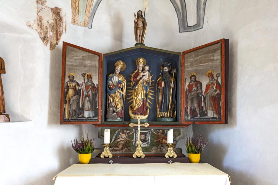 4.11: Altarschrein mit Hl. Martin (mit Bettler), Muttergottes, Antonius der Große (Abt)