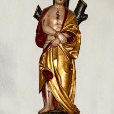 Das andere spätgotische Holzbildwerk, der Hl. Jakobus, stammt mit größter Wahrscheinlichkeit vom gleichen unbekannten Meister wie die Madonna; beide dürften zu einem gotischen Altar gehört haben. Die Heiligenstatue ist ohne plastische Veränderung geblieben; bei der Restaurierung konnte die Originalfassung freigelegt und konserviert werden.