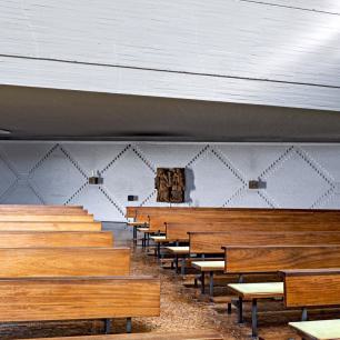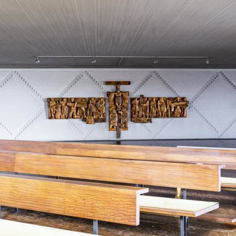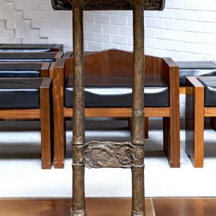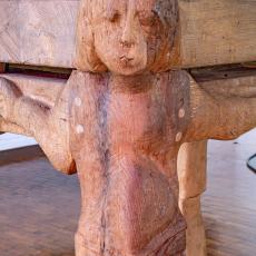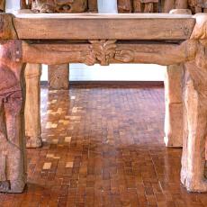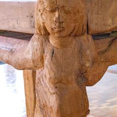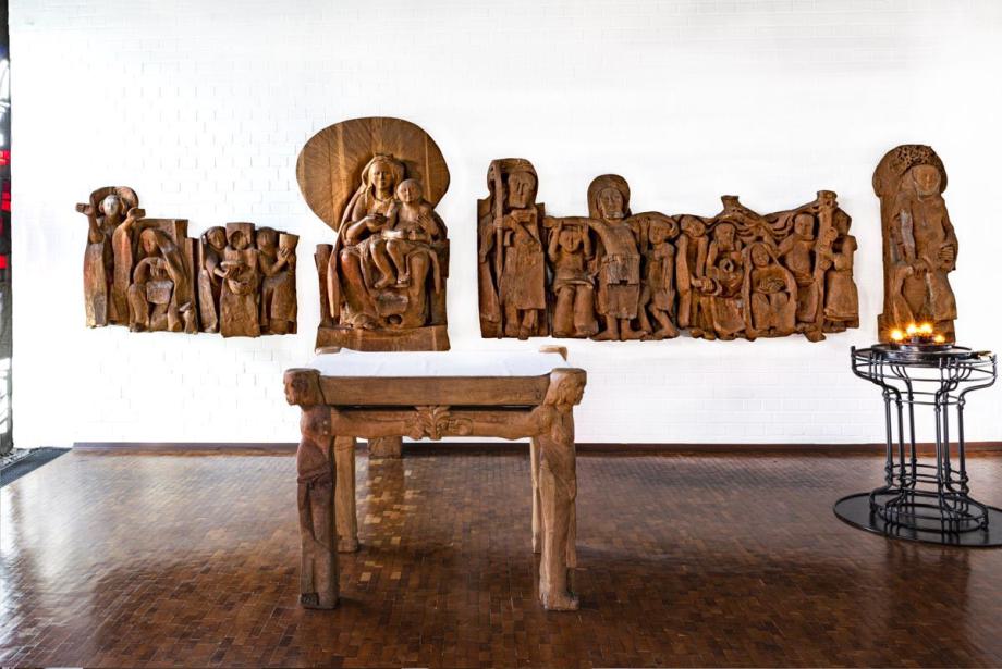 im heutigen Meditations-, Werktagsgottesdienst-, und Kinderkirchenraum zeigt die Tischträger Adam und Eva, Maria und Christus.
