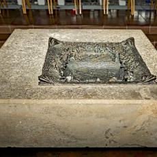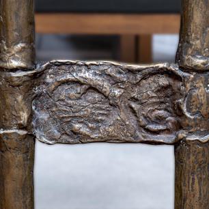 in Bronce, bis dahin erstmalig in der Gestalt der alttestamentlichen Bundeslade. Vier Väter/Evangelisten tragen den kostbaren Schrein, der das heilige Sakrament birgt. Flache Reliefs am Tabernakel beschreiben die Heilsgeschichte des alten und neuen Bundesvolkes: Das Osterlamm, das, sich-selbst-hingebend, andere rettet; das Manna als Überlebensbrot in der Wüste; die zerbrochenen Gesetzestafeln, die das jetzt gültige Gebot der Liebe verkünden; die Wachteln als Speise für das hungernde Volk; der brennende Dornbusch als Gottes Gegenwart; die Eherne Schlange, die mit ihrem Gegen-Serum heilt (ein Vorzeichen für Christus am Kreuz). Die Rückseite des Schreins zeigt die Ägyptischen Plagen, aktualisiert als Umweltgefahren und Lebensbedrohungen heute.