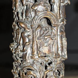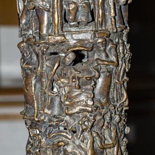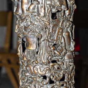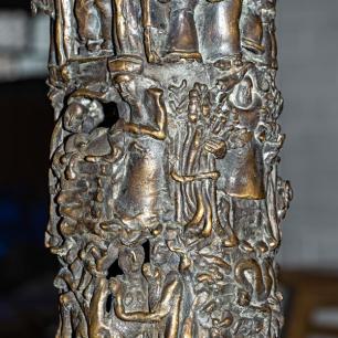 ist ein aus der Erde wachsender Baum, er ist der Stammbaum der Schöpfungsgeschichte (der untere gestaltete Figurenring), der Urgeschichte (mittlerer Ring) und der neutestamentlichen Heilsgeschichte (oberer Ring). Im unteren Ring erkennen wir Szenen des Weltenanfangs, die Erschaffung des Menschen. Im mittleren Ring den Bundesschluss Jahwes mit seinem erwählten Volk (als seine Repräsentanten: Abraham, Isaak,