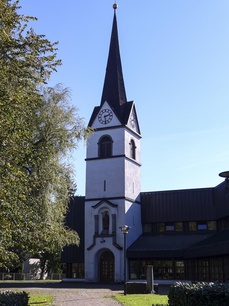 Den Kirchturm (aus der Mitte des 19. Jahrhunderts) sieht man schon von Weitem, wenn man zB auf dem Bodensee-Rundweg mit Fahrrad unterwegs ist und durch den schönsten Abschnitt fährt: Bregenz - Rheindelta - Gaißau/Rheineck - Rorschach. Hierbei kommt man auch vorbei am Kloster Mehrerau und der Kirche St. Sebastian in Hard.
