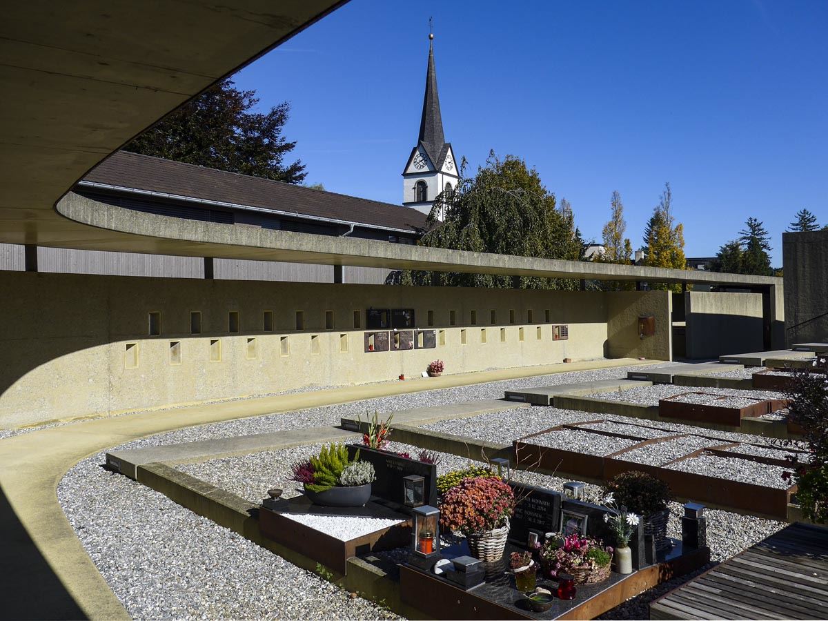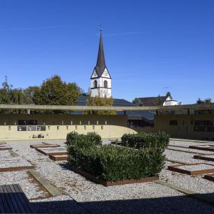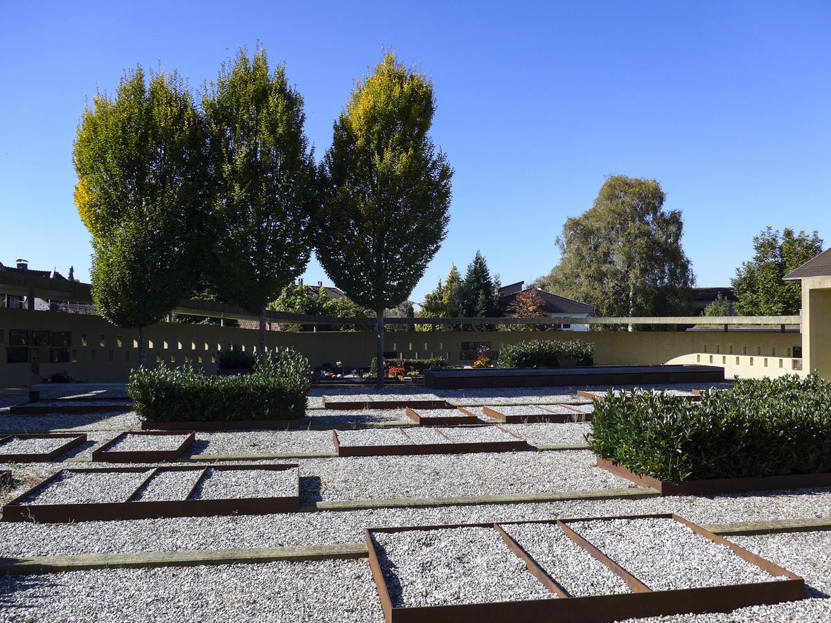 Die Friedhofserweiterung im österreichischen Fußach zeigt, dass räumliche Konzentration nicht nur gut funktioniert, sondern auch so aussieht. Geplant wurde sie vom Architekten Reinhard Drexel aus Hohenems, der den im Jahr 2002 ausgeschriebenen Wettbewerb für sich hatte entscheiden können. Sein Konzept vereint die Friedhofserweiterung mit der Neugestaltung des Kirchplatzes im Zentrum der 4.000 Einwohner zählenden Gemeinde und schafft gleichzeitig Distanz zur umliegenden Wohnbebauung. Quelle: Baunetzwissen