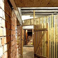 Für die Nachkriegsnutzung (bis heute) dann durch Lattenwände unterteilt.
