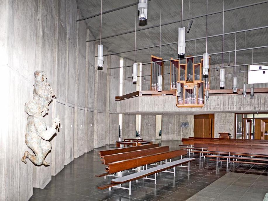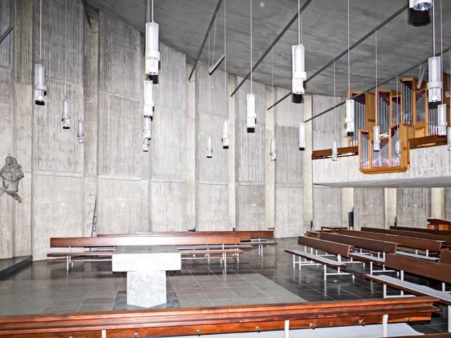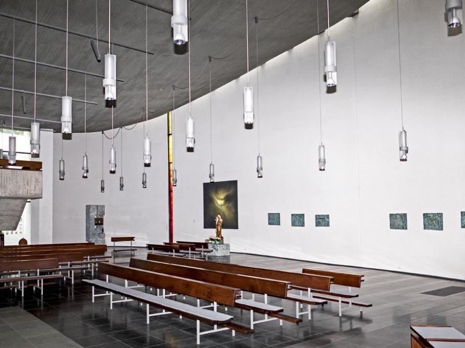 Die Kirche Zum heiligen Bruder Klaus von der Flüe wurde nach einem Wettbewerbsgewinn 1969 von Architekt Karl Hans Neumann 1974 im Stuttgarter Osten erbaut.