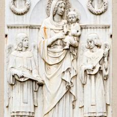 1.07 + 1.08: Relief über dem Haupteingang (West) Jesus und Johannes (der an Jesu' Herz ruht)