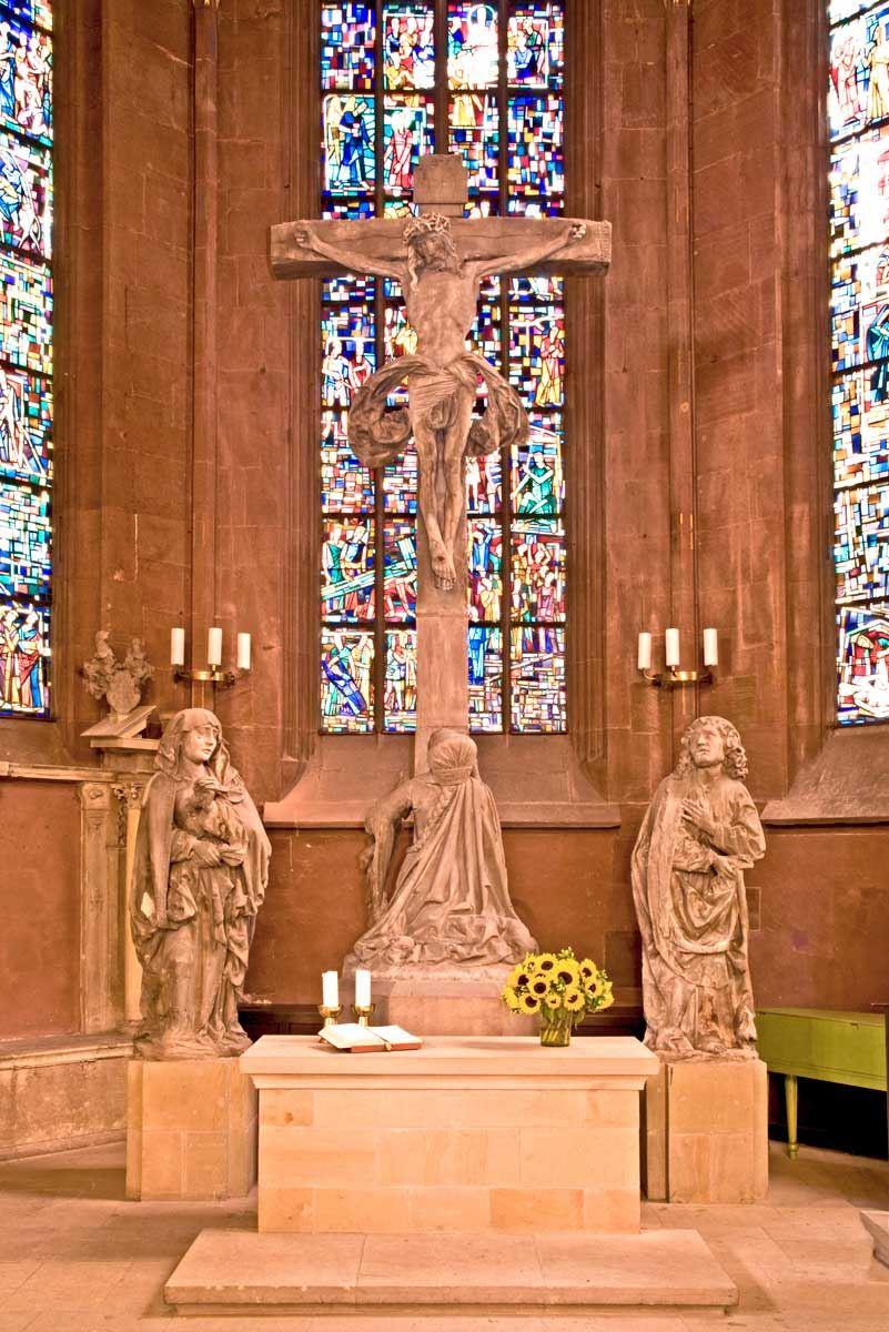 So sah die Hospitalkirche vor Umbau / Renovierung aus. Einige Bilder außen / innen aus dem Jahr 2014, Dazu Fotos des Altar-Tryptichons von Rudolf Schäfer, das 2017 keinen Platz mehr in der Kirche gefunden hat.