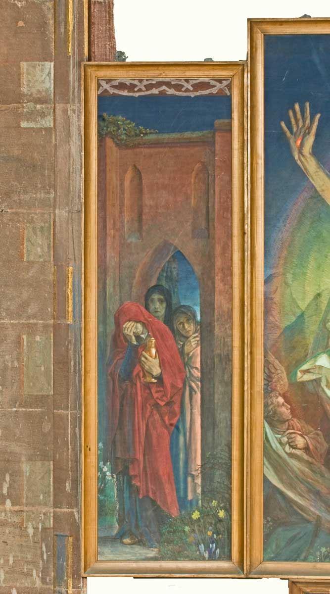 Das dreiflügelige Altarbild von Rudolf Schäfer nebst Predella („Ich bin der Erste und der Letzte und der Lebendige. Wer an mich glaubt, der hat das ewige Leben. Ich bin der helle Morgenstern. Ich komme bald".), das zum Gedächtnis der im 1. Weltkrieg (1914—1918) gefallenen Glieder der Hospitalgemeinde geschaffen wurde, war (bis 2014) an der Turmseite des Kirchenschiffes angebracht.