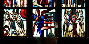 Farbfenster im Schiff der Kirche (Otto Habel). |