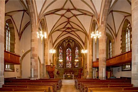 Der Chor mit seinem Sternengewölbe wurde von 1465 bis 1471 errichtet und befindet sich in originalem Zustand. In den folgenden Jahren wurde das Langhaus als Hallenbau mit drei gleich hohen Schiffen erbaut. Dieser einheitlich konzipierte Raum war auf die Bedürfnisse des städtischen Bürgertums im ausgehenden Mittelalter zugeschnitten, das eine eigene Predigtkirche beanspruchte.