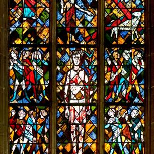 Sie wird im rechten Fenster mit dem irdischen Leben, mit Opfertod und Auferstehung Jesu Christi nach dem Neuen Testament fortgesetzt.