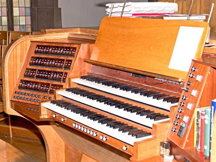 42. Geigenprinzipal 8' 43. Rohrflöte 8' 44. Salicional 8' 45. Vox coelestis 8' 46. Fugara 4' 47. Rohrflöte 4' 48. Nasat 2 2/3' 49. Waldflöte 2' 50. Terz 1 3/5' 51. Scharffmixtur 4f 2' 52. Dulcian 16' 53. Trompette 8' 54. Oboe 8' 55. Tremulant 56. III 16' 57. III 4' |
